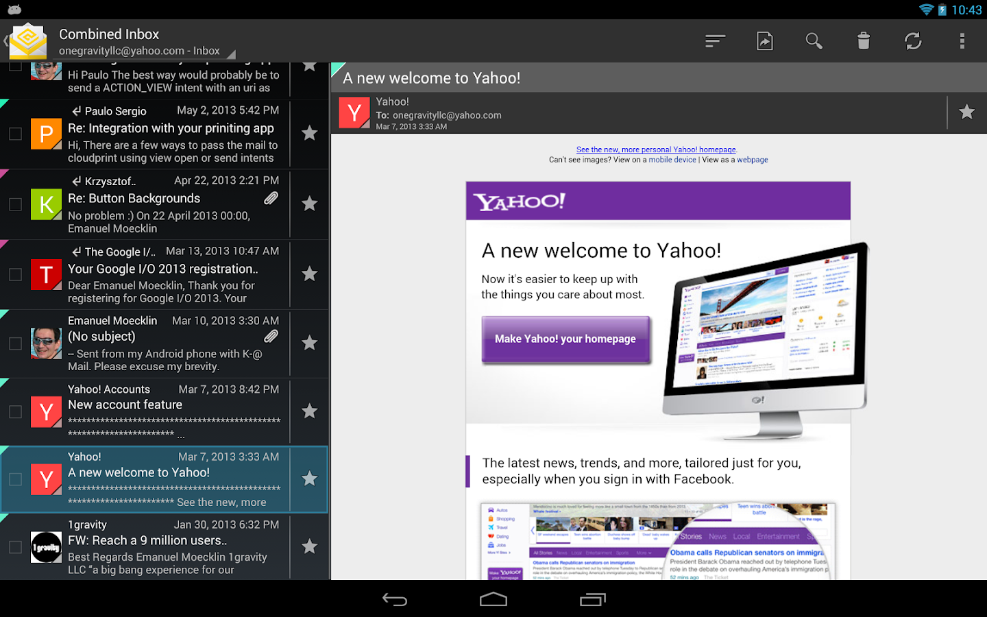 [Yahoo!, Gmail, Outlook, Hotmail, E-Mail, email, mail, Exchange, IMAP, POP3, SMTP]